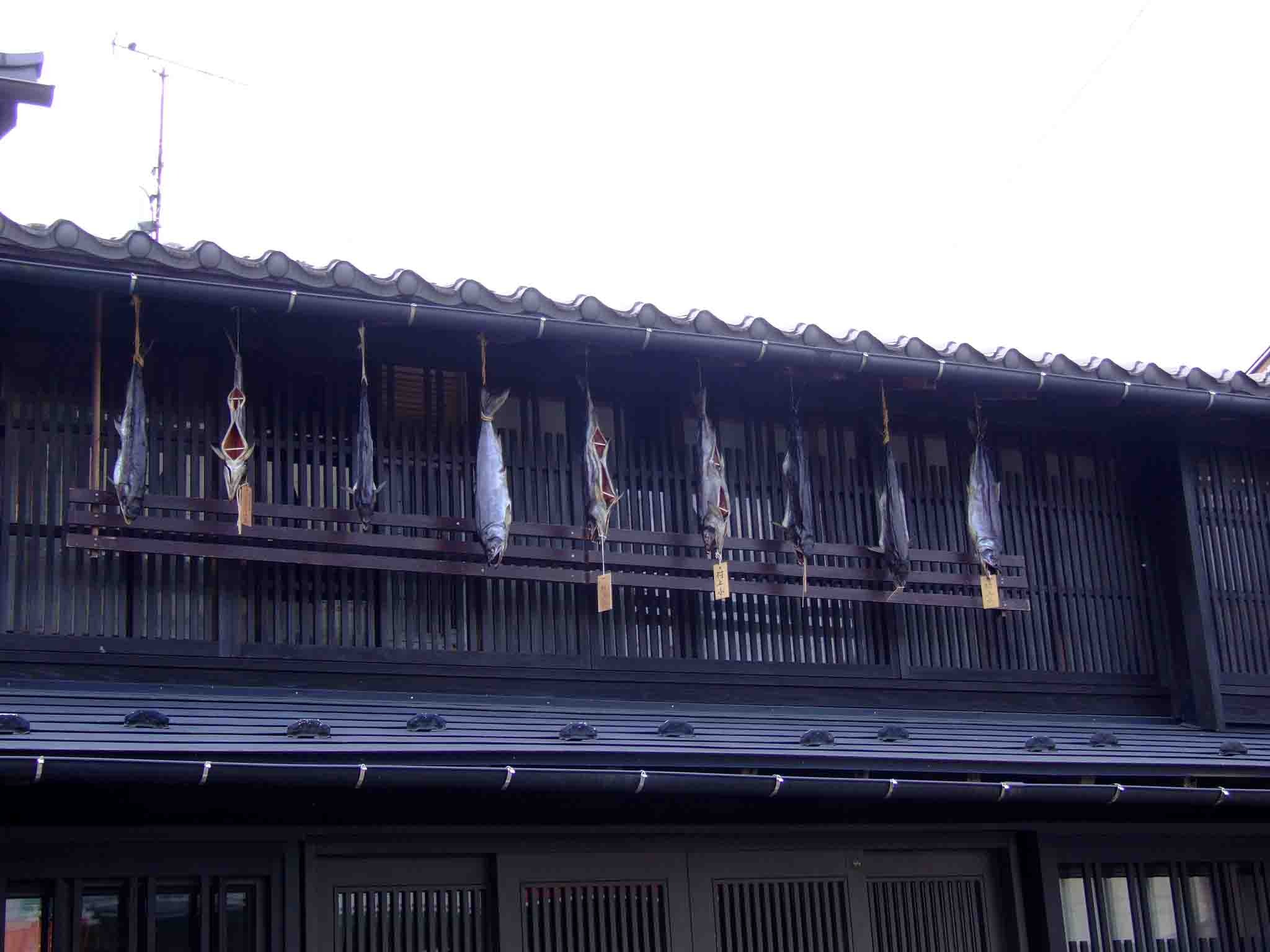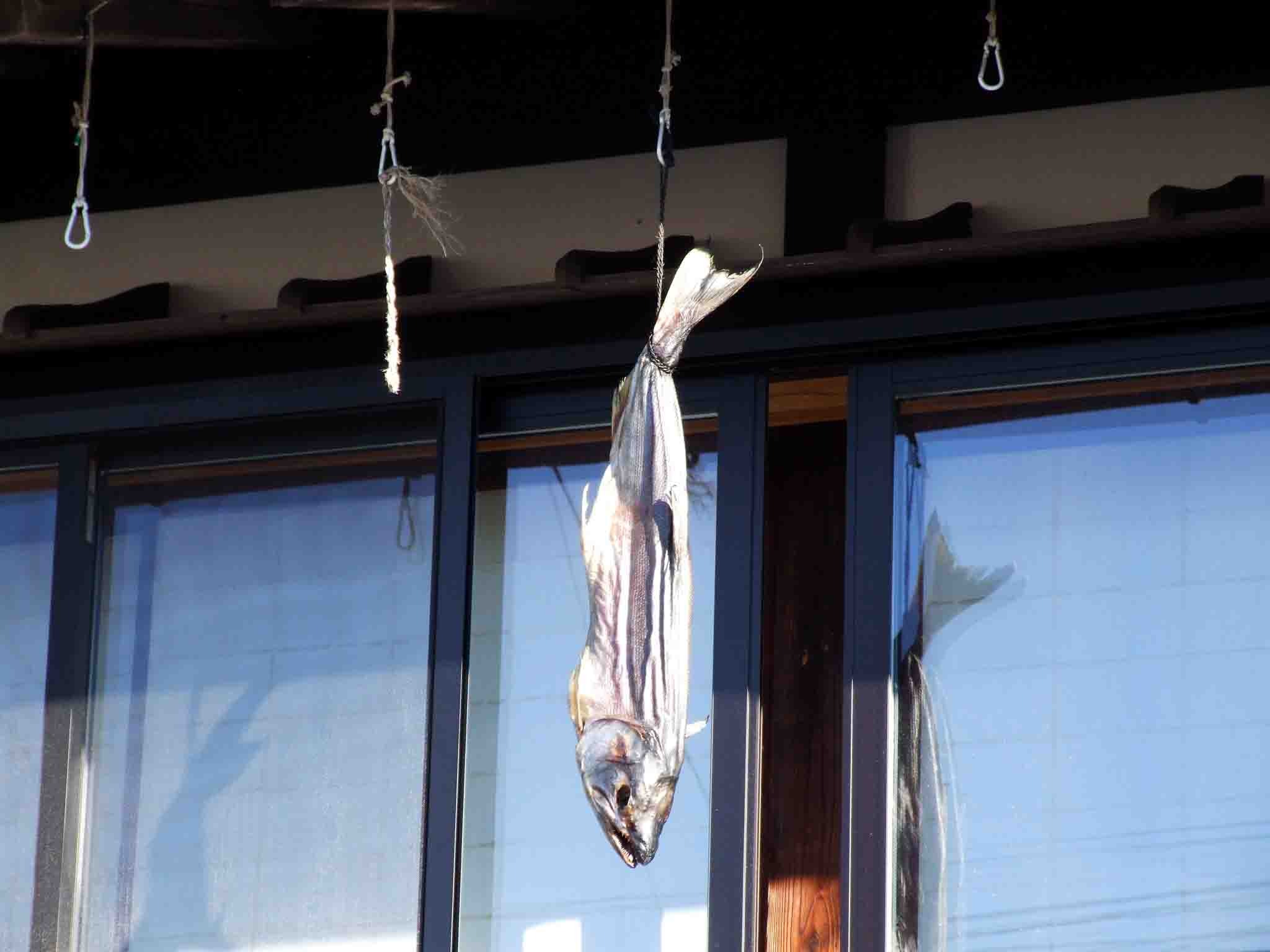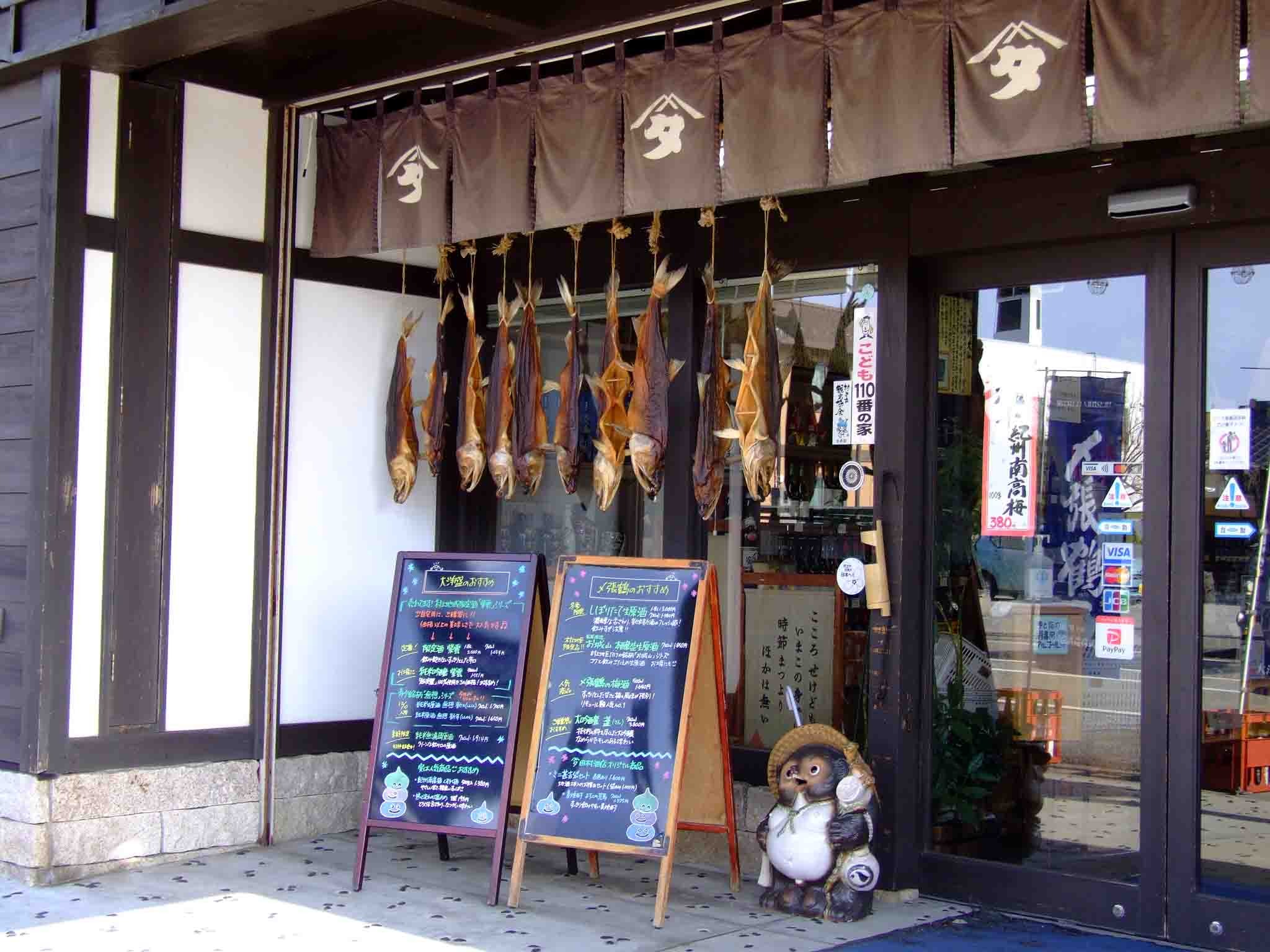 田村酒店ではタヌキが鮭を食べたそうに見上げていました。