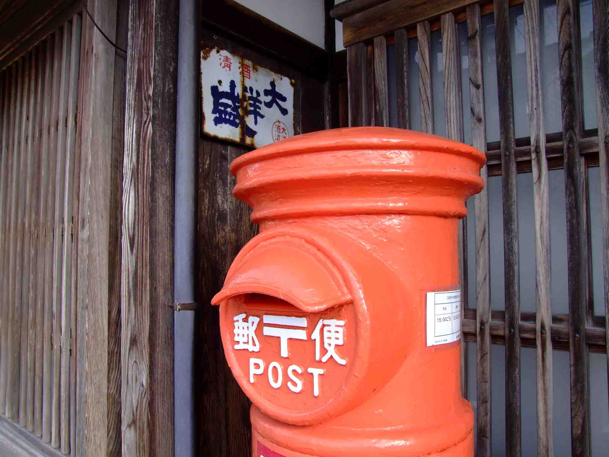 毎度おなじみの大洋盛の古びた看板と旧型ポスト、