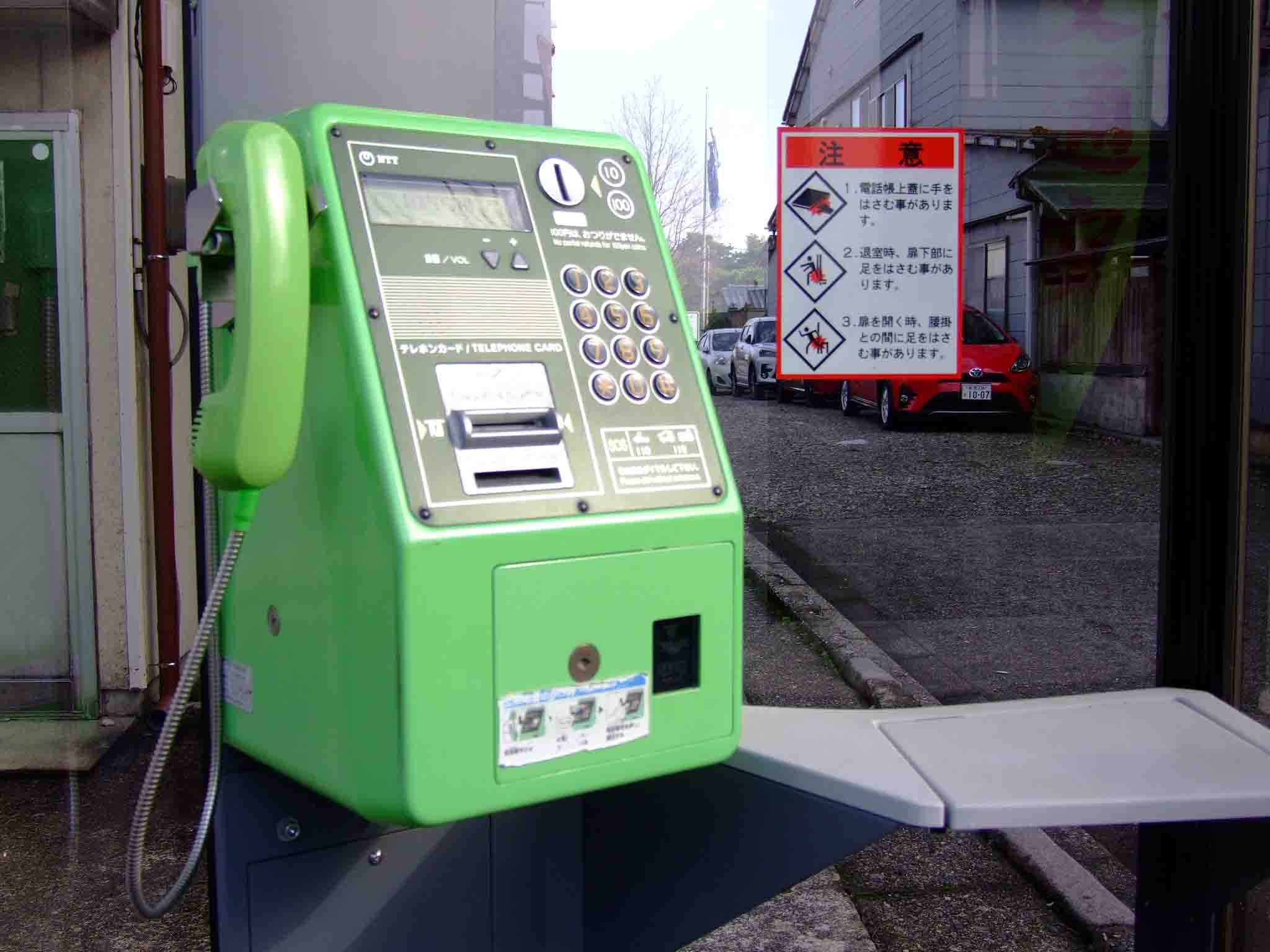 益田書店前の緑のカード式公衆電話はまだ健在で、