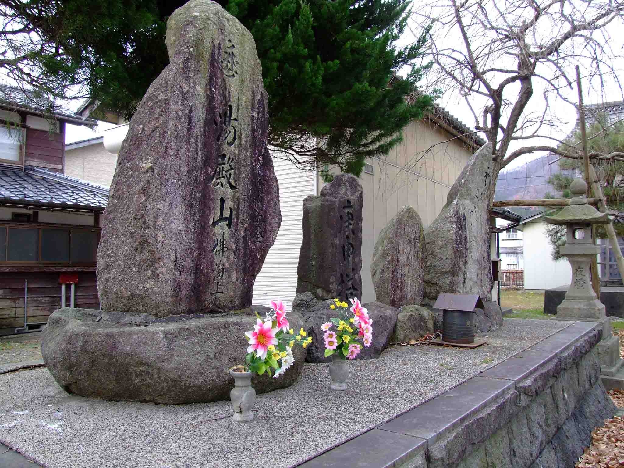 湯殿山の石碑にはきれいなお花が飾ってありました。