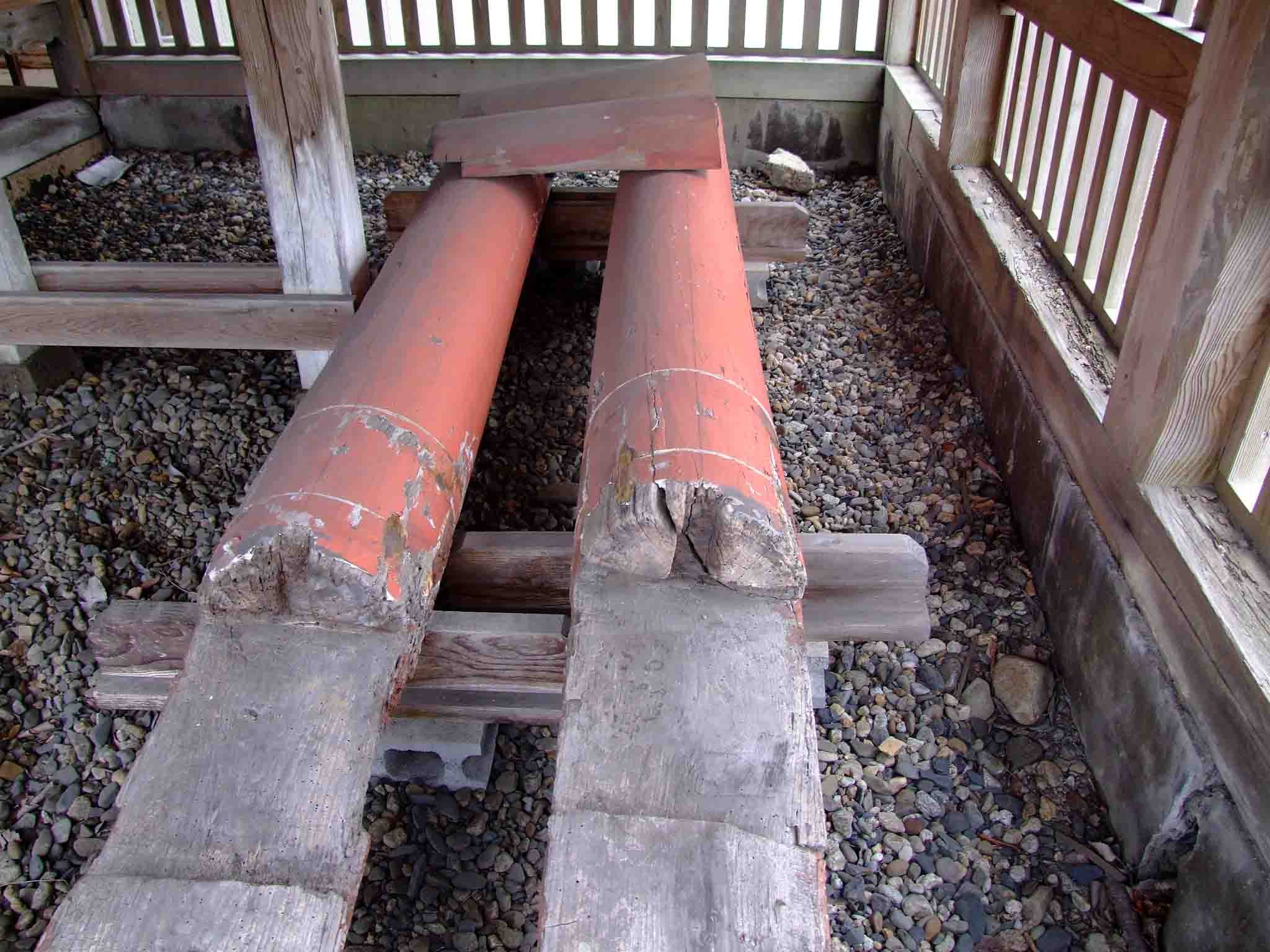 縁の下には老朽化して取り外した鳥居が入れてありました。