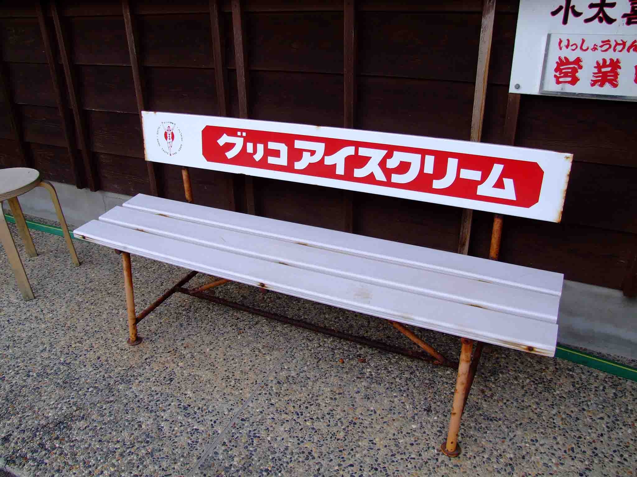 懐かしのコカコーラのロゴマークの付いたベンチがありましたが、