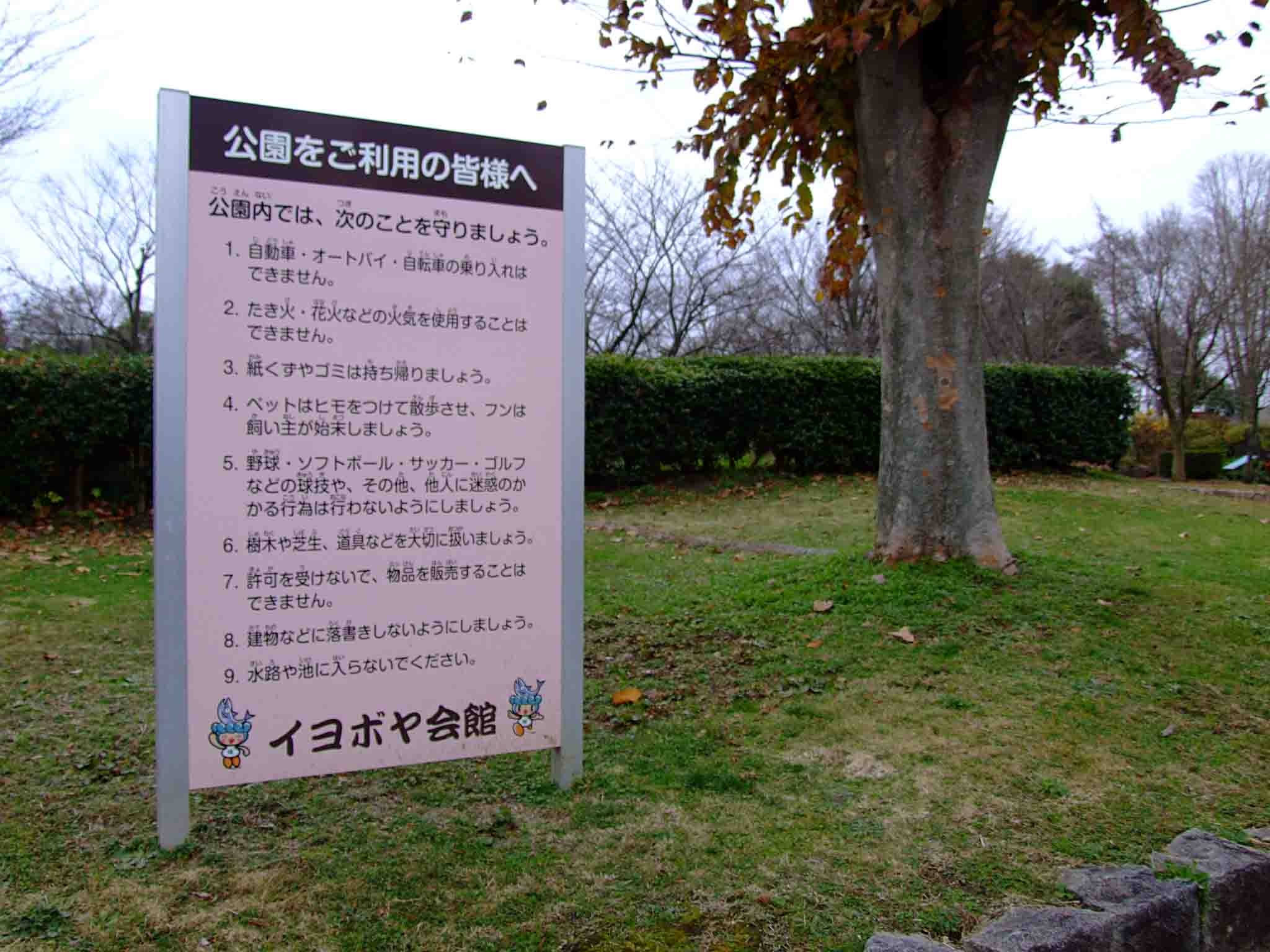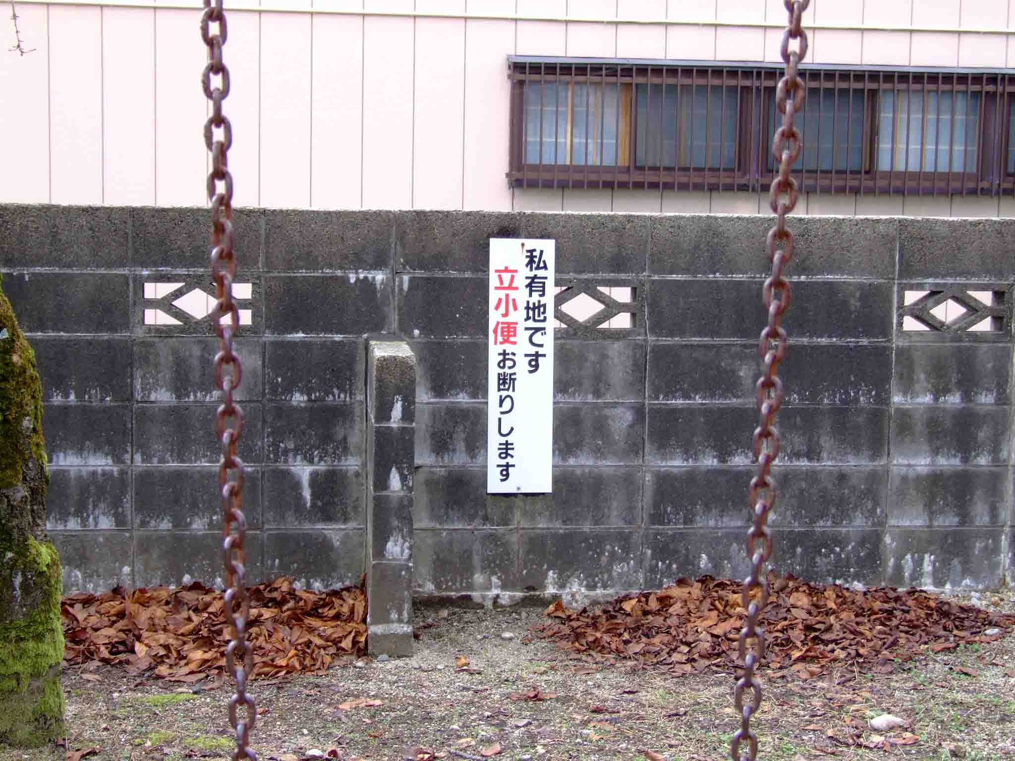 ブランコがあってその背後には立小便禁止の張り紙が。
